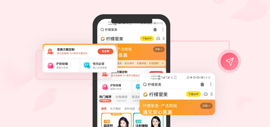 檸檬愛(ài)美平臺"百度新醫療",包含內容、評價(jià)和電商點(diǎn)的一站式醫美服務(wù)平臺,流量群體更加精準,用戶(hù)意圖更強。