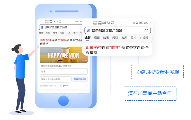 通過(guò)百度信息流推廣投放本地市場(chǎng),以基木魚(yú)建站為基礎頁(yè)面搭配在線(xiàn)咨詢(xún)、表單、電話(huà)等工具,通過(guò)愛(ài)番番線(xiàn)索培育轉化,近一年期的投放線(xiàn)下加盟量提升近40%